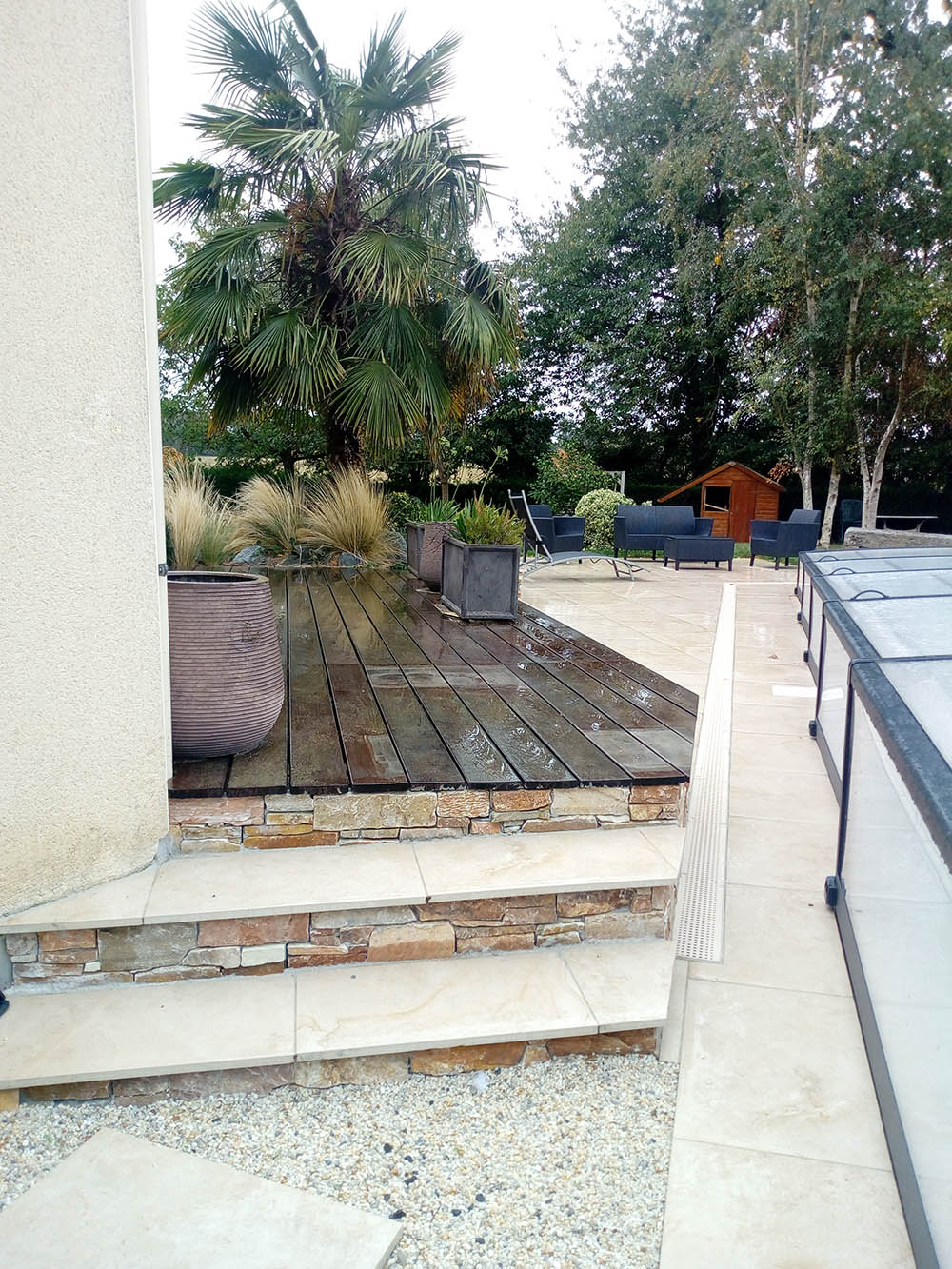 En fonction de vos envies et après une fine analyse de vos aspirations, nous assurons des aménagements de terrasse de qualité, à la hauteur de vos exigences. Nous posons tous types de terrasses sur Rennes et ses environs (pose traditionnelle ou sur plots) :